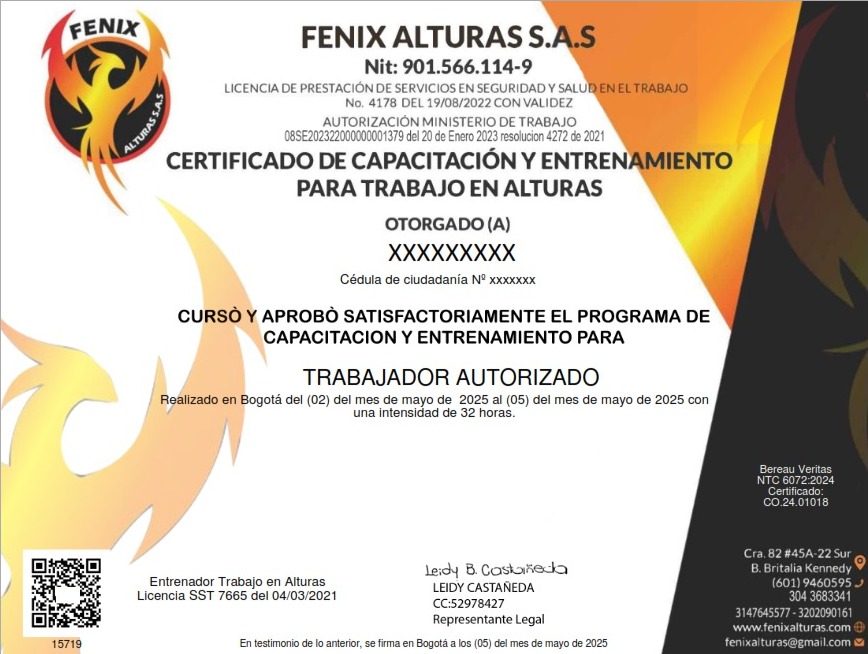 Único certificado autorizado de Fenix Alturas, compruebe su validación escaneando el código QR